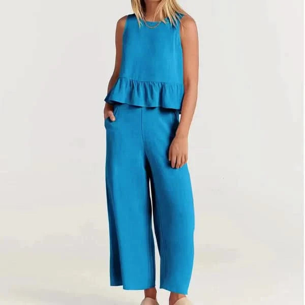 ✔️ Calça pantalona com bolsos funcionais: Além do visual elegante, os bolsos laterais são práticos e bem embutidos, mantendo a linha do conjunto limpa e refinada. Funcionalidade que não compromete o estilo.